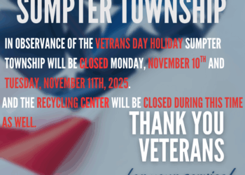 NOTICE: Sumpter Township Offices – Veterans Day Holiday Sumpter Township Offices will be closed on…