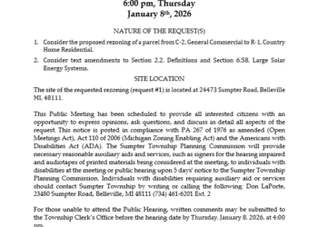 SUMPTER TOWNSHIP PLANNING COMMISSION NOTICE OF PUBLIC HEARINGS The Sumpter Township Planning Commission will…