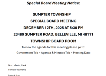 Special Board Meeting Notice: SUMPTER TOWNSHIPSPECIAL BOARD MEETING DECEMBER 12TH, 2025 AT 5:30 PM 23480…
