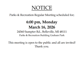 Monthly Parks & Recreation Meetings begin at 6:00 pm. Located at: 24560 Sumpter Rd., Belleville,…