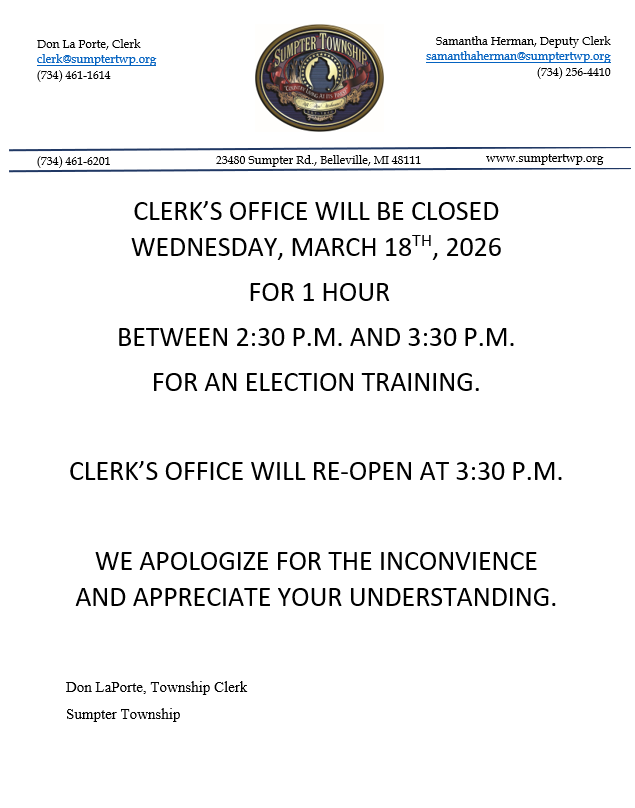 CLERK’S OFFICE WILL BE CLOSED