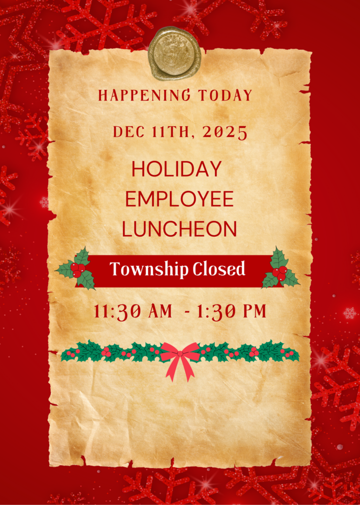 The Township Offices will be CLOSED from 11:30 am to 1:30 pm for a Holiday Employee Luncheon today.