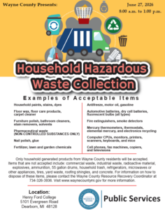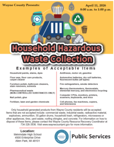 Wayne County Household Hazardous Waste Collection: Wayne County’s Department of Public Services hosts four Household Hazardous Waste (HHW)…
