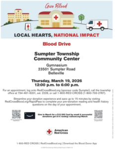 🩸 Sumpter Township Community Blood Drive Location:Sumpter Township Community Center – Gym23501 Sumpter RdBelleville, MI…