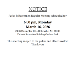 Monthly Parks & Recreation Meetings begin at 6:00 pm. Located at: 24560 Sumpter Rd., Belleville,…