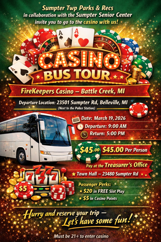 Please note: Sumpter Township Parks & Recreation is a committee comprised of resident volunteers and they will respond to your inquiry as soon as possible.